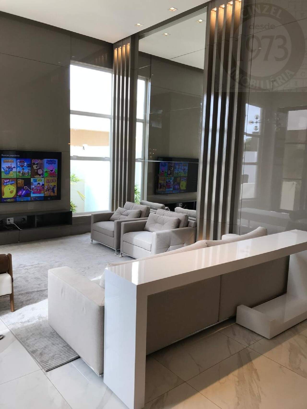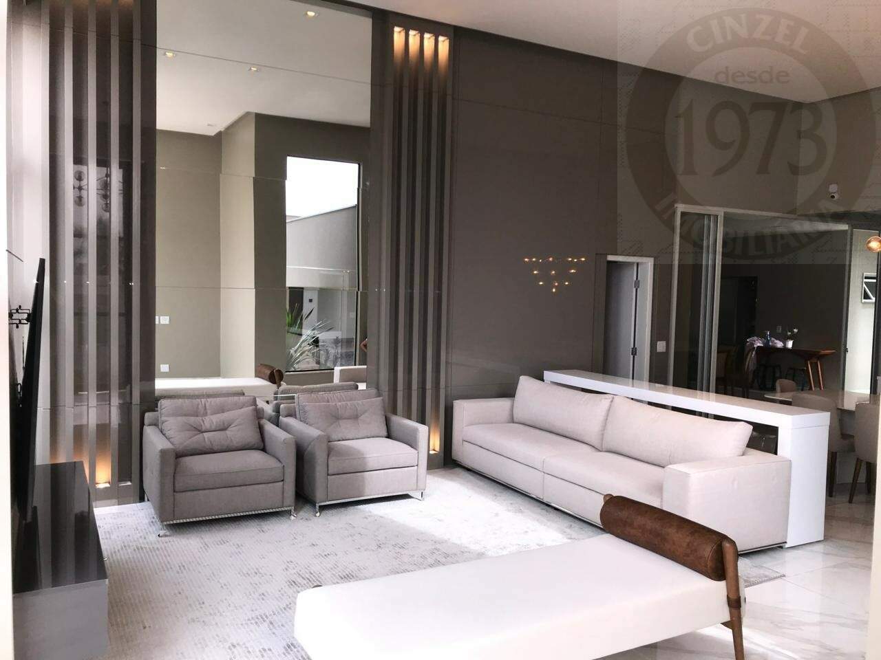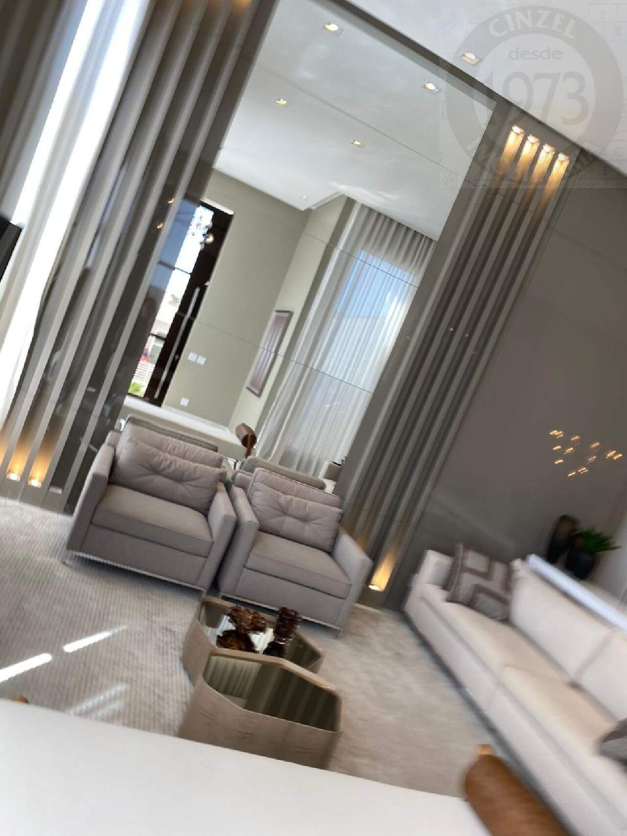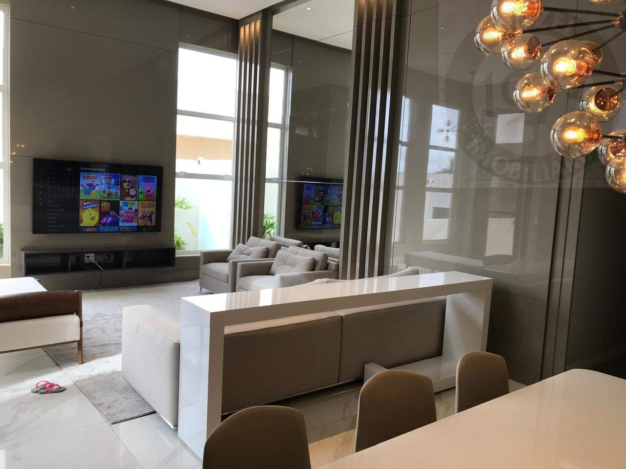 - SALA COM DOIS AMBIENTES E PÉ DIREITO DE 4,5 METROS ( COM BELOS PAINEIS EM MDF LACA E ILUMINAÇÃO);