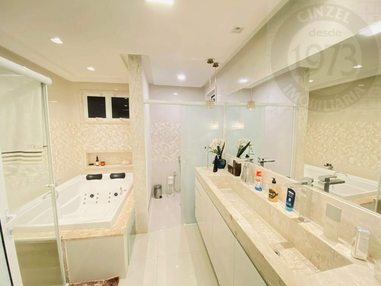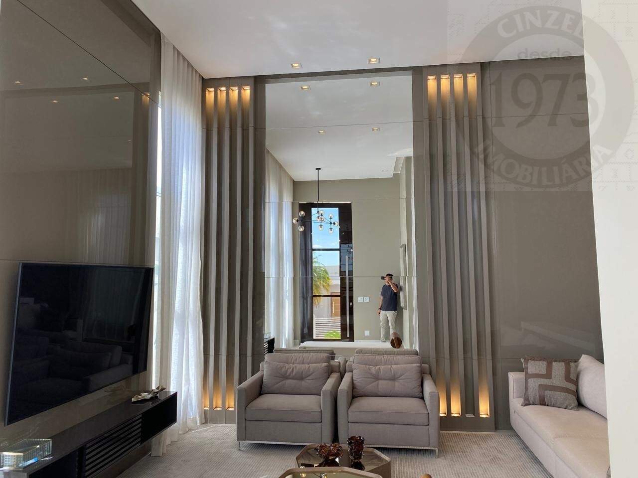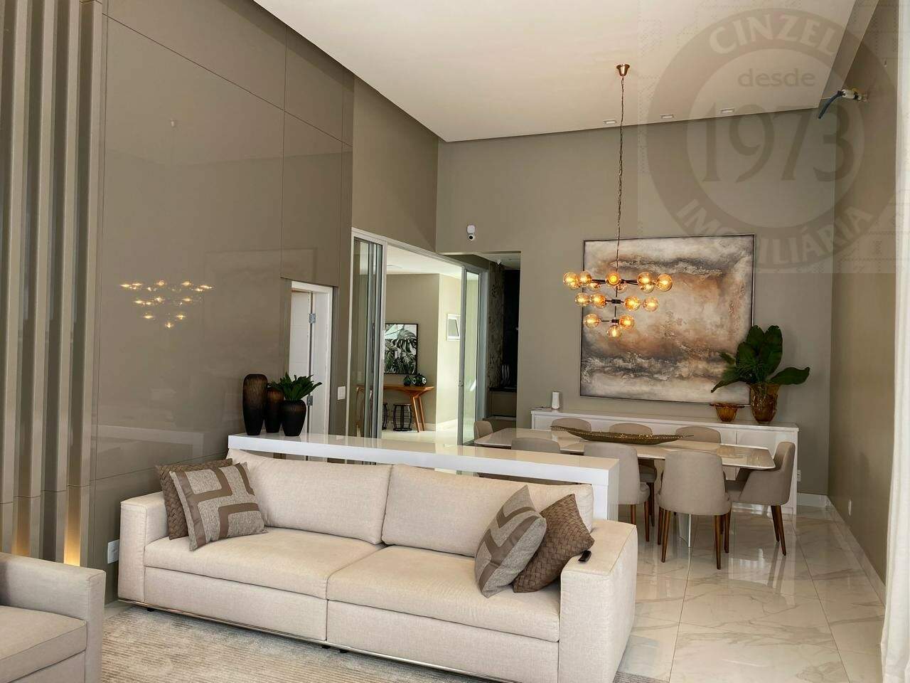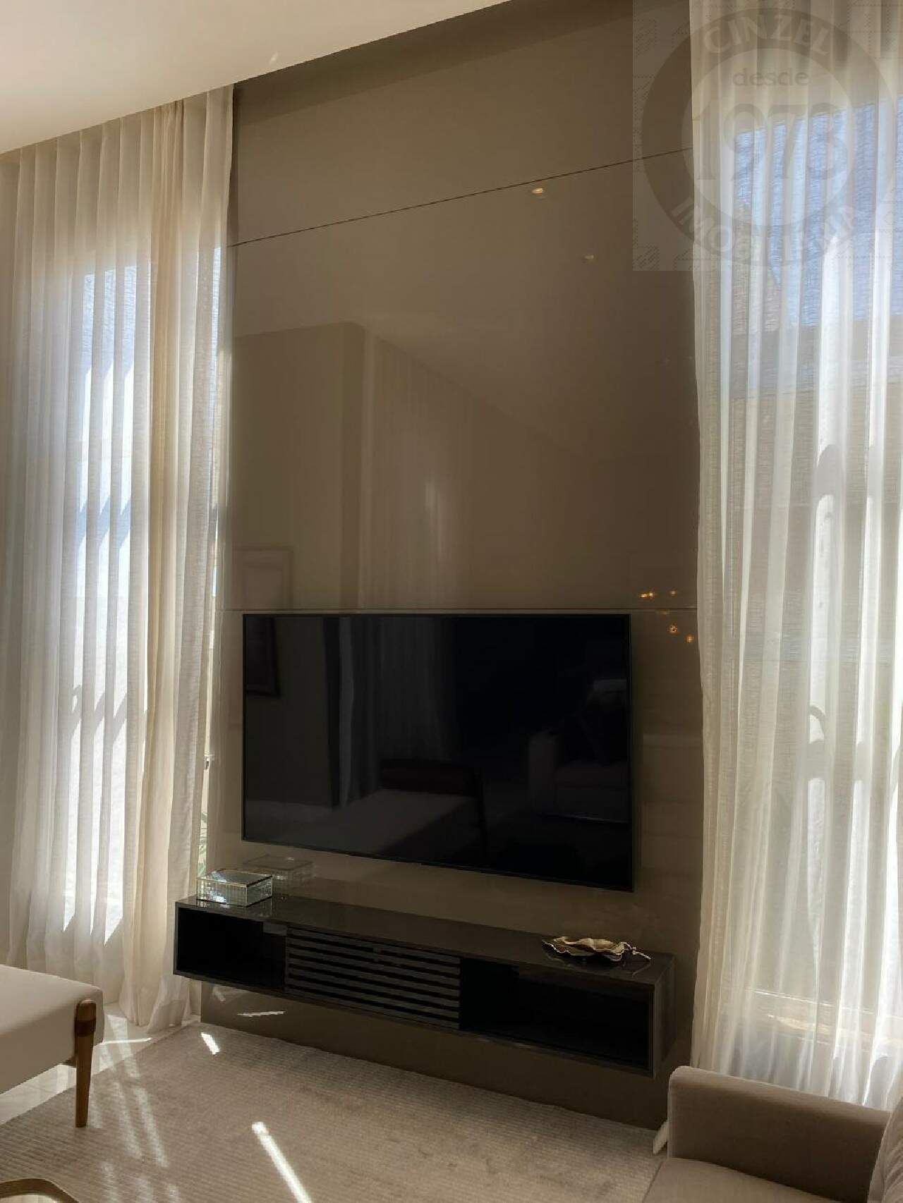 - SALA COM DOIS AMBIENTES E PÉ DIREITO DE 4,5 METROS ( COM BELOS PAINEIS EM MDF LACA E ILUMINAÇÃO);