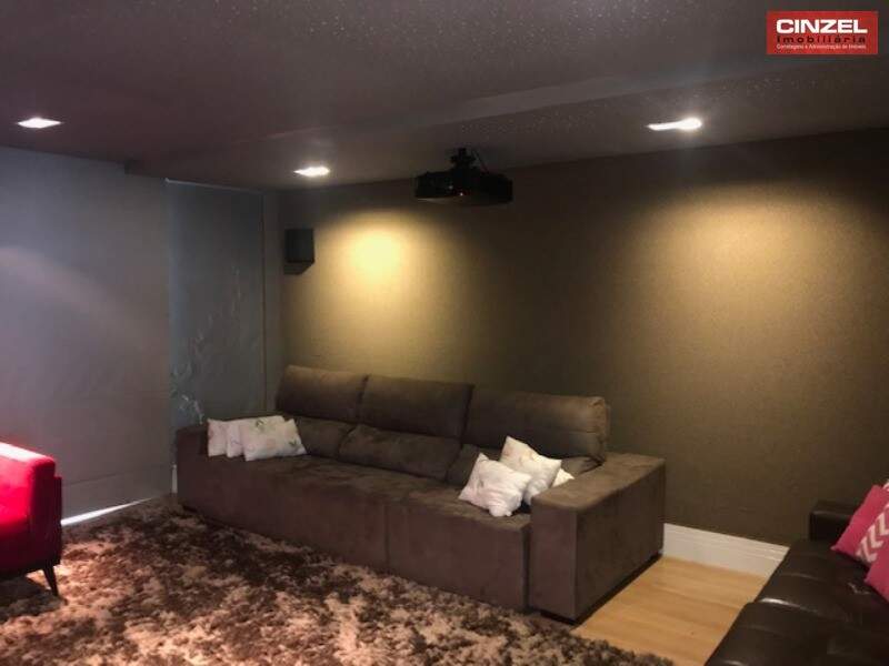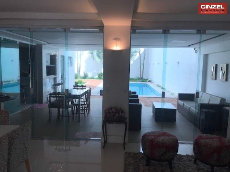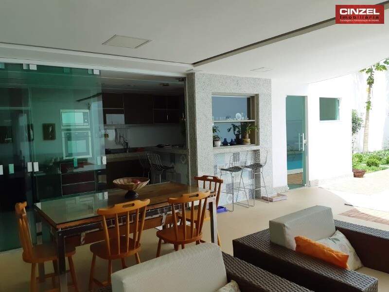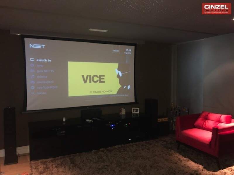 TÉRREO: SALA DE ESTAR E JANTAR INTEGRADAS E CLIMATIZADAS, HOME CINEMA CLIMATIZADO E COM ISOLAMENTO ACÚSTICO, COZINHA PLANEJADA TOTALMENTE INTEGRADA COM A ÁREA DE LAZER E EQUIPADA COM FOGÃO, GRILL, CHURRASQUEIRA E SISTEMA DE DEPURAÇÃO DE FUMAÇA E GORDURA, PISCINA AQUECIDA COM DECK DE MADEIRA E BELO PAISAGISMO.