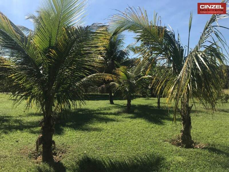 BELO JARDIM GRAMADO COM PALMEIRAS, COQUEIROS E ARVORES FRUTÍFERAS, TODA CERCADA COM 06 FIOS DE ARAME E TELA;